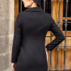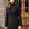 ABRIGO CON CUELLO Y SOLAPA DE LANZA. DELANTERO CON CORTE FRANCES, ABROCHA CON 3 BOTONES FORRADOS DE LA MISMA TELA, BOLSAS DE VIVO Y CARTERA. COSTADILLO RECTO. ESPALDA RECTA. MANGA LARGA DE DOS PIEZAS. ABRIGO CON FORRO. PLACA EN VIVO LADO IZQUIERDO