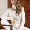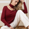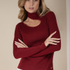 BLUSA EN TEJIDO DE PUNTO EN CUELLO ALTO, ESCOTE Y MANGA LARGA