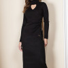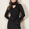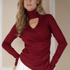 BLUSA EN TEJIDO DE PUNTO ASIMETRICA CON APERTURA EN COSTADO IZQUIERDO, CUELLO ALTO CON ESCOTE AL FRENTE. MANGA LARGA