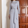 BLUSA EN TEJIDO DE PUNTO CUELLO OJAL, MANGA LARGA Y CINTURON INTEGRADO