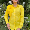 BLUSA CAMISERA, MANGA LARGA, ADORNO AL FRENTE