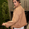 TEJIDO PLANO 100% POLIÉSTER, OVERZISE, CUELLO ALTO, BOLSILLOS Y BROCHES AL FRENTE, GUANTES INCLUIDOS