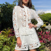 CONJUNTO: TEJIDO CALADO 2 PIEZAS, BLUSA MANGA LARGA Y SHORT CON FORRO