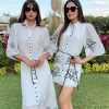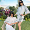 CONJUNTO DE 2 PIEZAS: BLUSA MANGA AL CODO; FALDA LARGA