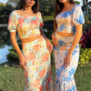 CONJUNTO 2 PIEZAS: BLUSA MANGA CORTA, ESPALDA CON SMOKE, FALDA CON PRETINA Y CIERRE