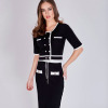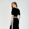 Falda entallada en color negro a la rodilla.