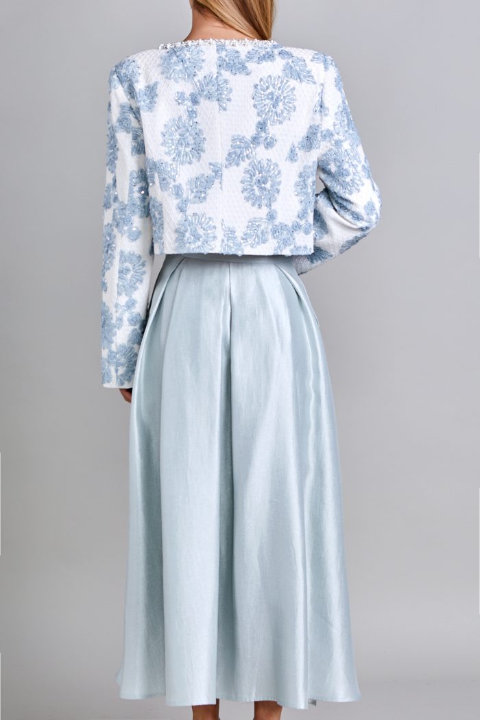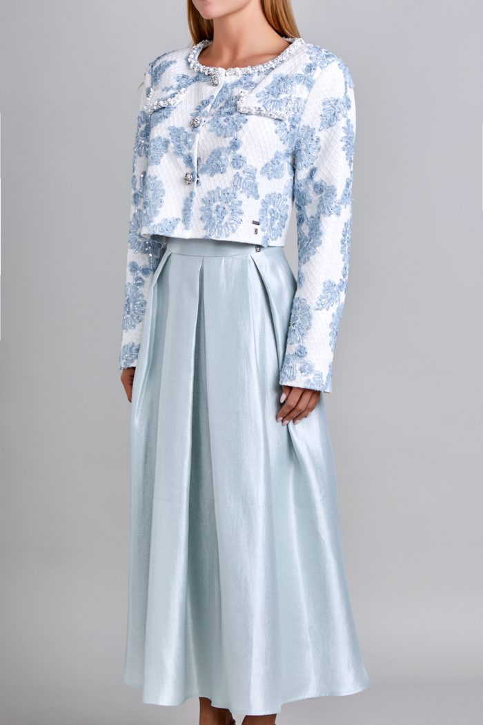 FALDA CON PRETINA RECTA. CIERRE EN COSTADO IZQUIERDO. DELANTERO CON TABLONES Y BOLSA DE COSTADO. ESPALDA CON TABLONES. FALDA LARGO MIDI Y FORRO DE ALGODON. PLACAS EN CINTURA LADO IZQUIERDO