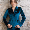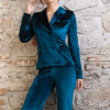 PANTALON DE TERCIOPELO CON PRETINA CURVA DE TRES PIEZAS DELANTERO PIERNA RECTA TRACERO CIERRE INVISIBLE QUE LLEGA HASTA LA PRETINA. PIERNA RECTA