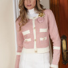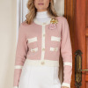 SACO TIPO BOLERO TEJIDO DE PUNTO, ESCOTE REDONDO EN COMBINACION HUESO, CIERRA CON CUATRO BOTONES. 2 CARTERAS EN DELANTERO EN COMBINACION HUESO. SE ACOMPAÑA DE ADORNO DOS BROCHES EN FORMA DE FLOR. MANGA LARGA.