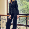 SACO SOLAPA A ESCUADRA CORTE RECTO CON 3 BOTONES AL FRENTE , CORTE PRINCESA EN DELANTERO CON BOLSA DE VIVOS CON CARTERA. LLEVA COSTADILLO Y ESPALDA CON CORTE EN CENTRO. MANGA LARGA TIPO SASTRE.