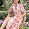 VESTIDO LARGO,TEJIDO ESTAMPADO, MANGA CORTA