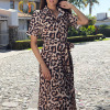 VESTIDO EN TEJIDO ESTAMPADO, MANGA CORTA