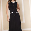 VESTIDO EN TEJIDO DE PUNTO CON CUELLO REDONDO CON ADORNO DE FLORES EN COMBINACION HUESO, FALDON TIPO A Y BOLSAS SIMULADAS. SIN MANGA