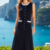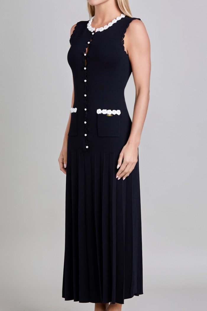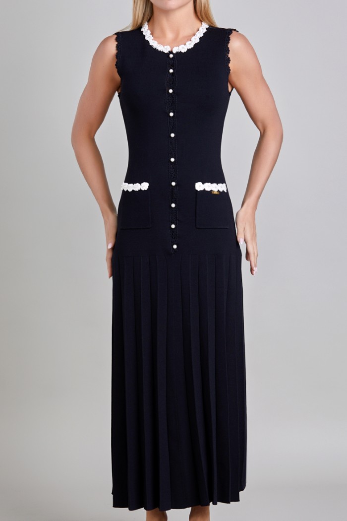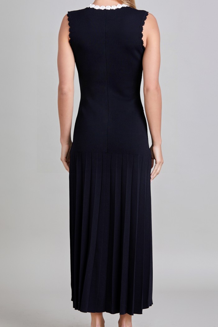 VESTIDO LARGO, EN TEJIDO DE OUNTO, SIN MANGAS CUELLO REDONDO