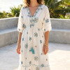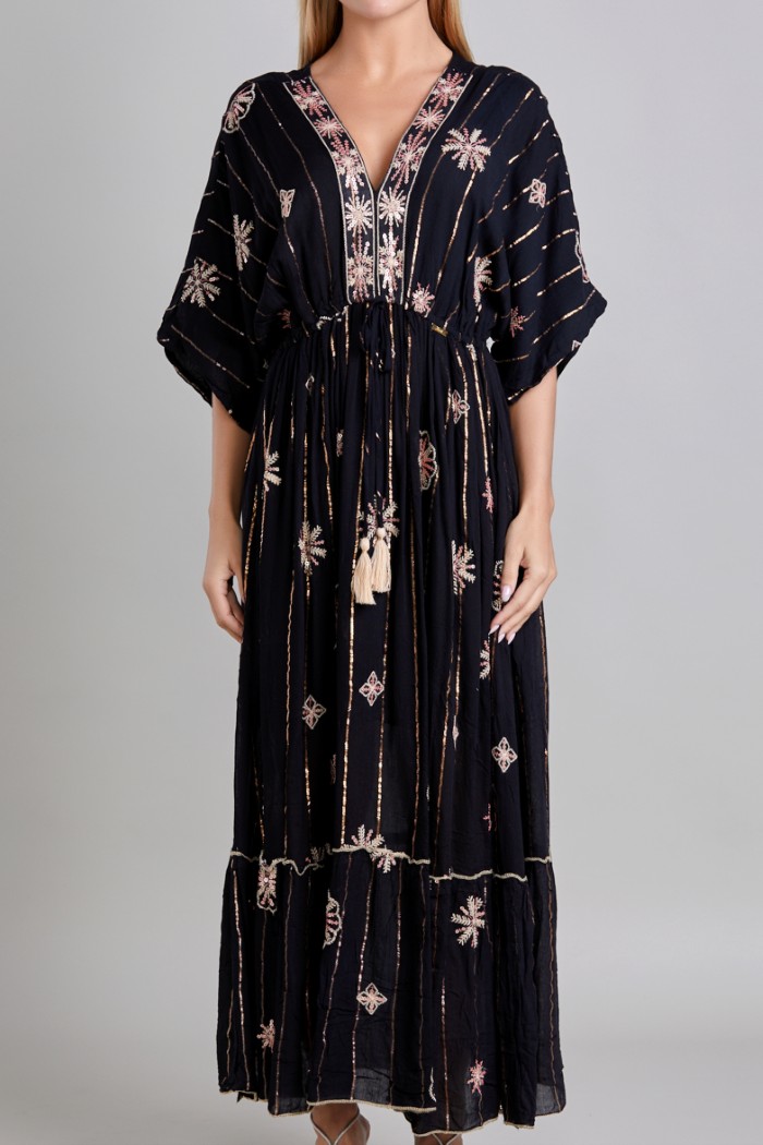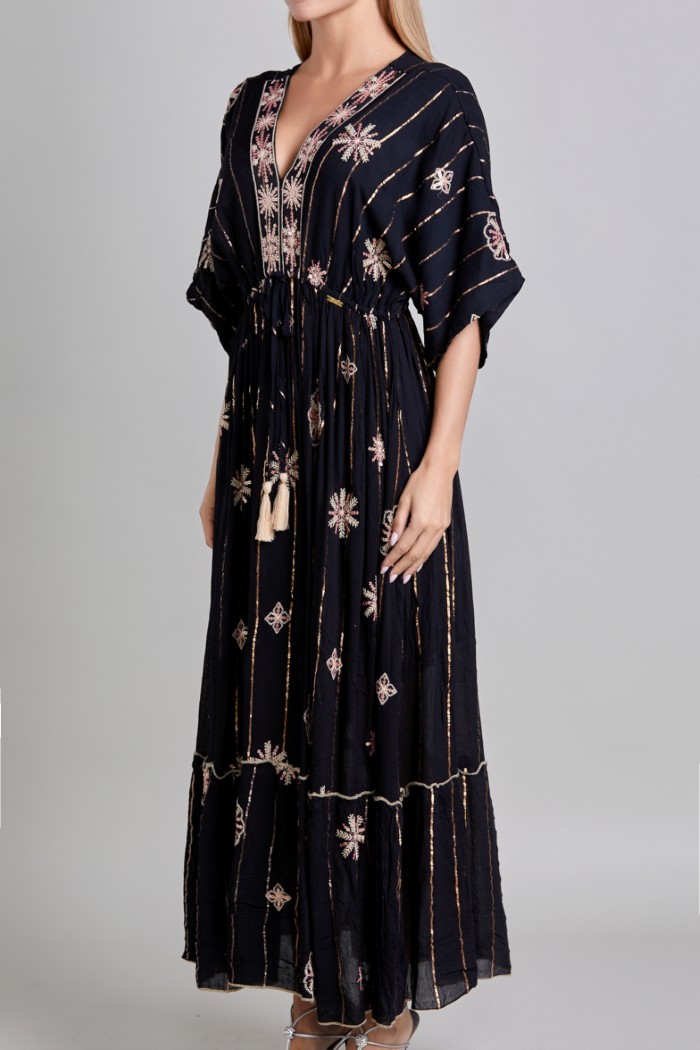 VESTIDO MANGA 3/4, ESCOTE EN V, RESORTE EN CINTURA