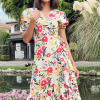 VESTIDO LARGO, TEJIDO ESTAMPADO, MANGA CORTA