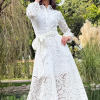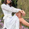 VESTIDO: CUELLO CAMISERO CON PIE DE CUELLO. BOTONES DORADOS DE BOLA. TALLE DELANTERO SUPERIOR, CON PINZA DE BUSTO Y LATERAL, ALETILLA DE LA MISMA TELA, FALDA LARGA Y AMPLIA CON ALETILLA LLEVA BOLSAS EN COSTADO. ESPALDA SUPERIOR CON PINZA LATERAL, FALDA LARGA CON AMPLITUD. MANGA LARGA CON AMPLITUD EN PUÑO Y ELASTICO EN EL INTERIOR FORRO DE ALGODON FALDA A ALTURA RODILLA. CINTURON DE LA MISMA TELA. PLACA DORADA EN CUELLO LADO IZQUIERDO
