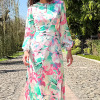 VESTIDO: ESCOTE REDONDO CON BIES EN CONTORNO. DELANTERO CON ABERTURA EN CENTRO DELANTERO SUPERIOR, PINZA DE BUSTO Y LATERAL, CINTURILLA ANCHA,FALDA AMPLIA Y CON BOLSAS EN COSTADO ESPALDA CON CIERRE INVISIBLE EN CENTRO ESPALDA, CINTURILLA ANCHA Y FALDA LARGA Y AMPLIA. MANGA LARGA CON AMPLITUD Y CON ELASTICO EN PUÑO. FORRO DE ALGODON. PLACA EN CINTURILLA LADO IZQUIERDO.